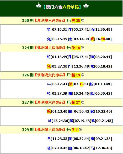 | 329期 黄金八肖〔牛猴蛇猪兔鸡马鼠〕开:?00准 |
